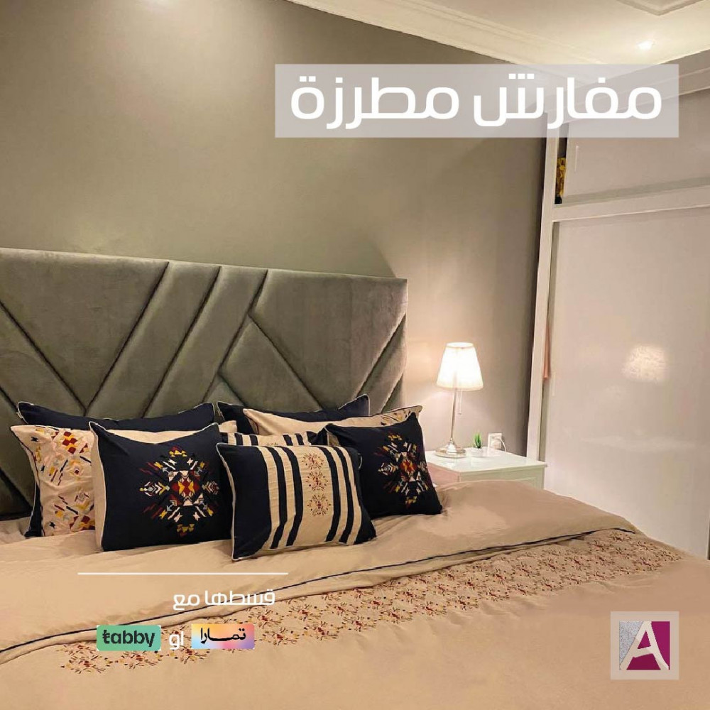 • مفارش مطرزه خامات ناعمة تجعله تنعم بنوع عميق و مريح .