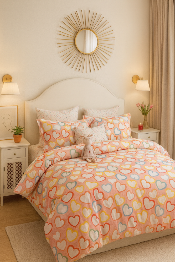 مفرش سرير ربيعي, ملائم لفصل الربيع والصيف معًا, مُصمم بأشكال وألوان زاهية ومُبهجة ترمز لفصل الربيع, صُنعت