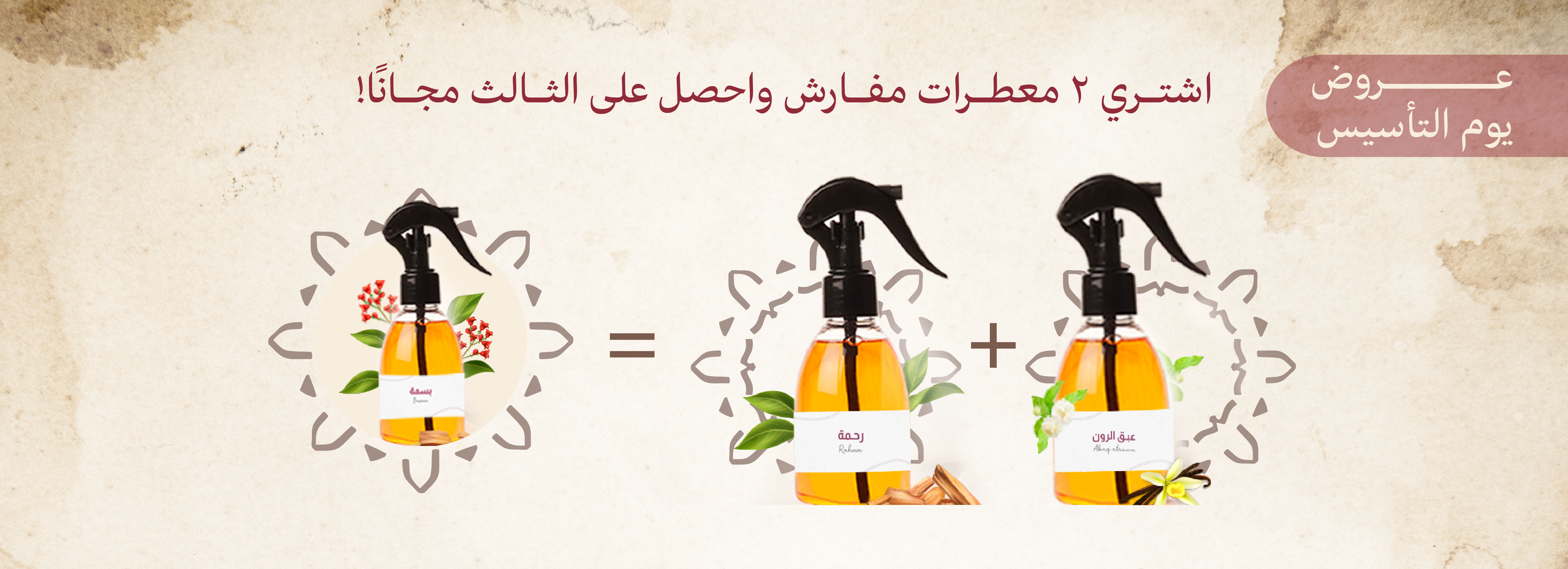 عند شرائك اثنان من المعطرات ستحصل على الثالث مجاناً احتفالًا بيوم التأسيس